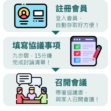 建議每半年定期召開家庭會議,檢視照顧需求與更新資訊,修正家庭照顧協議。